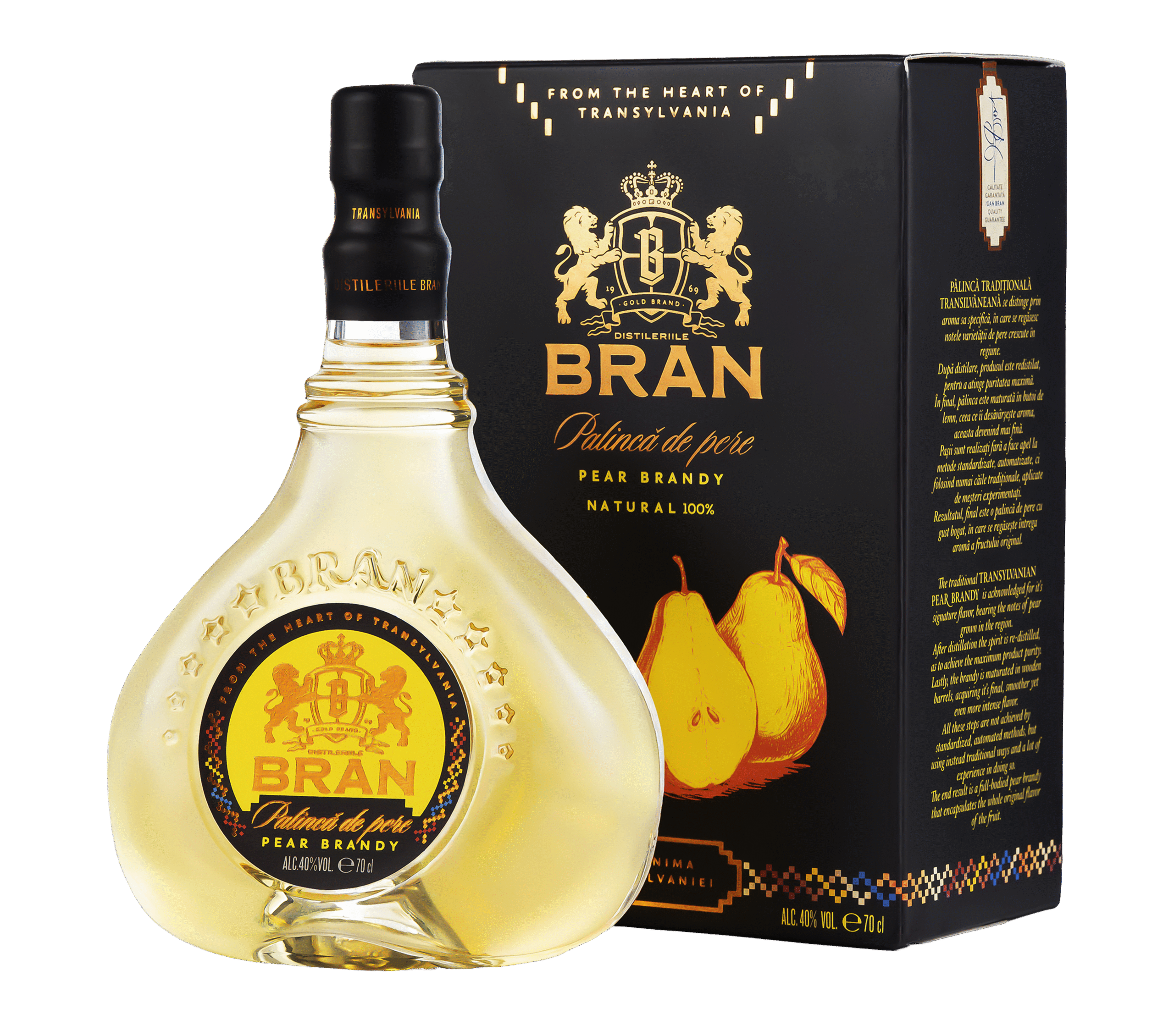 Pălincă Pere Distileriile Bran – Ediție Limitată (700 ml, 40% alc/vol), distilată lent pentru a păstra